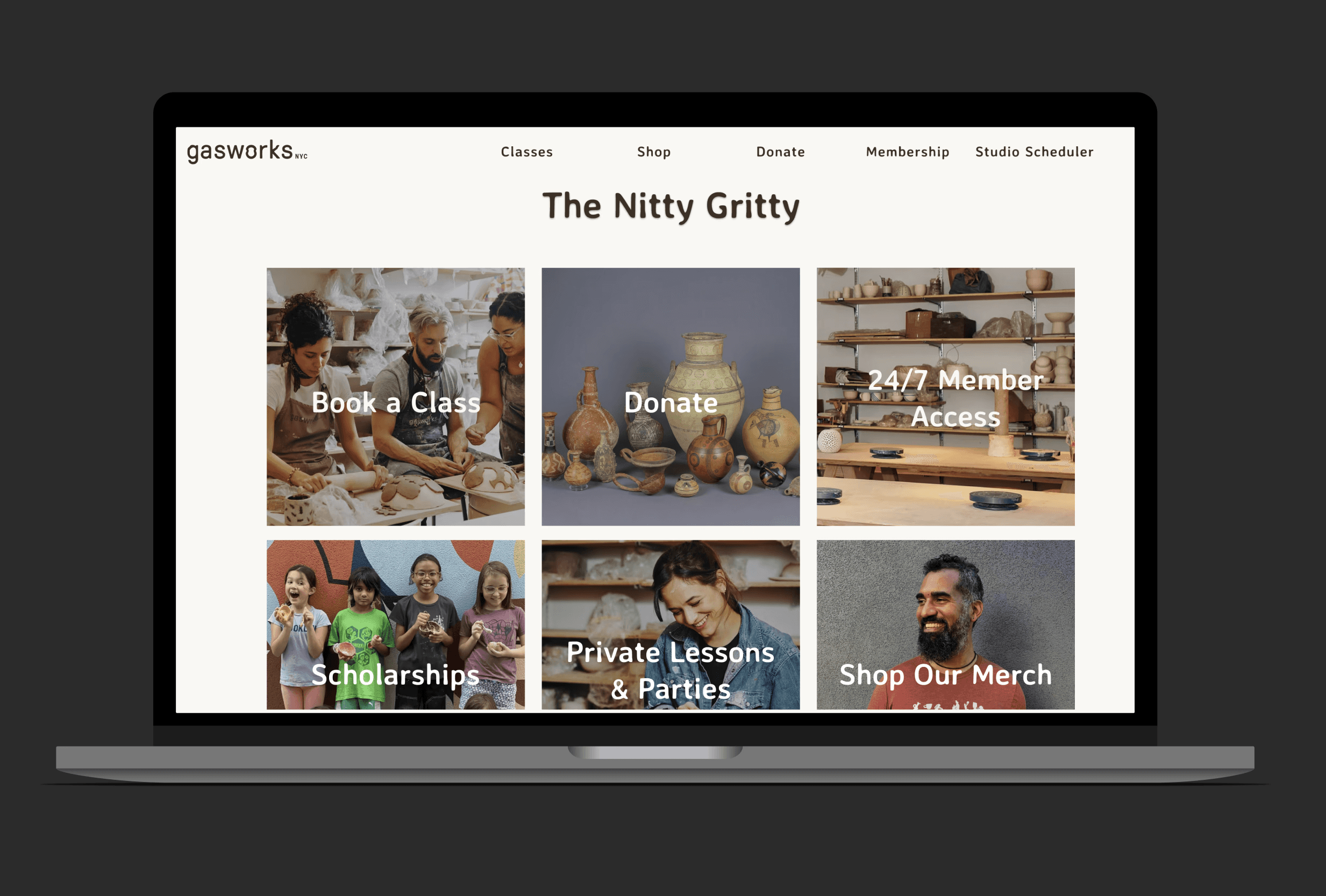 " GasWorks NYC, a nonprofit ceramics studio, needed a more organized and modern website. I redesigned key UI components and improved page structure to enhance clarity, accessibility, and user flowโbringing higher-quality presentation to their online presence. "